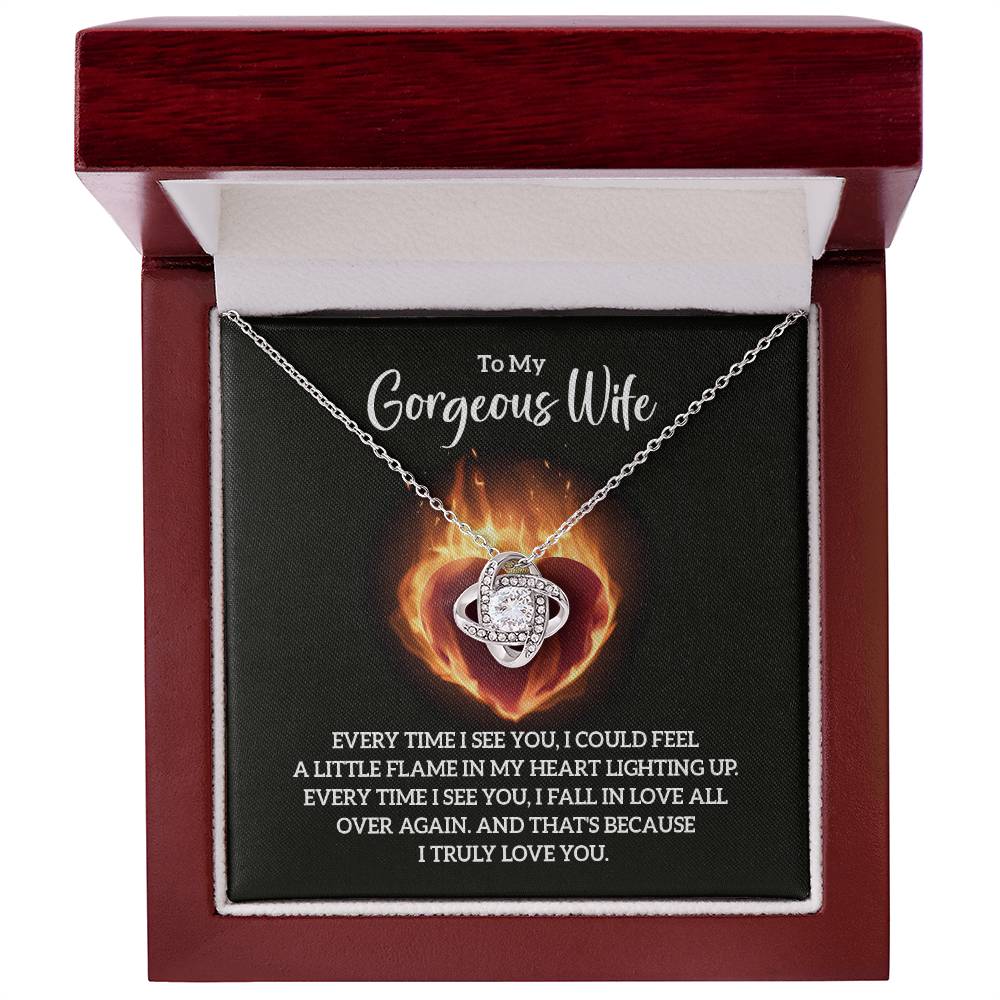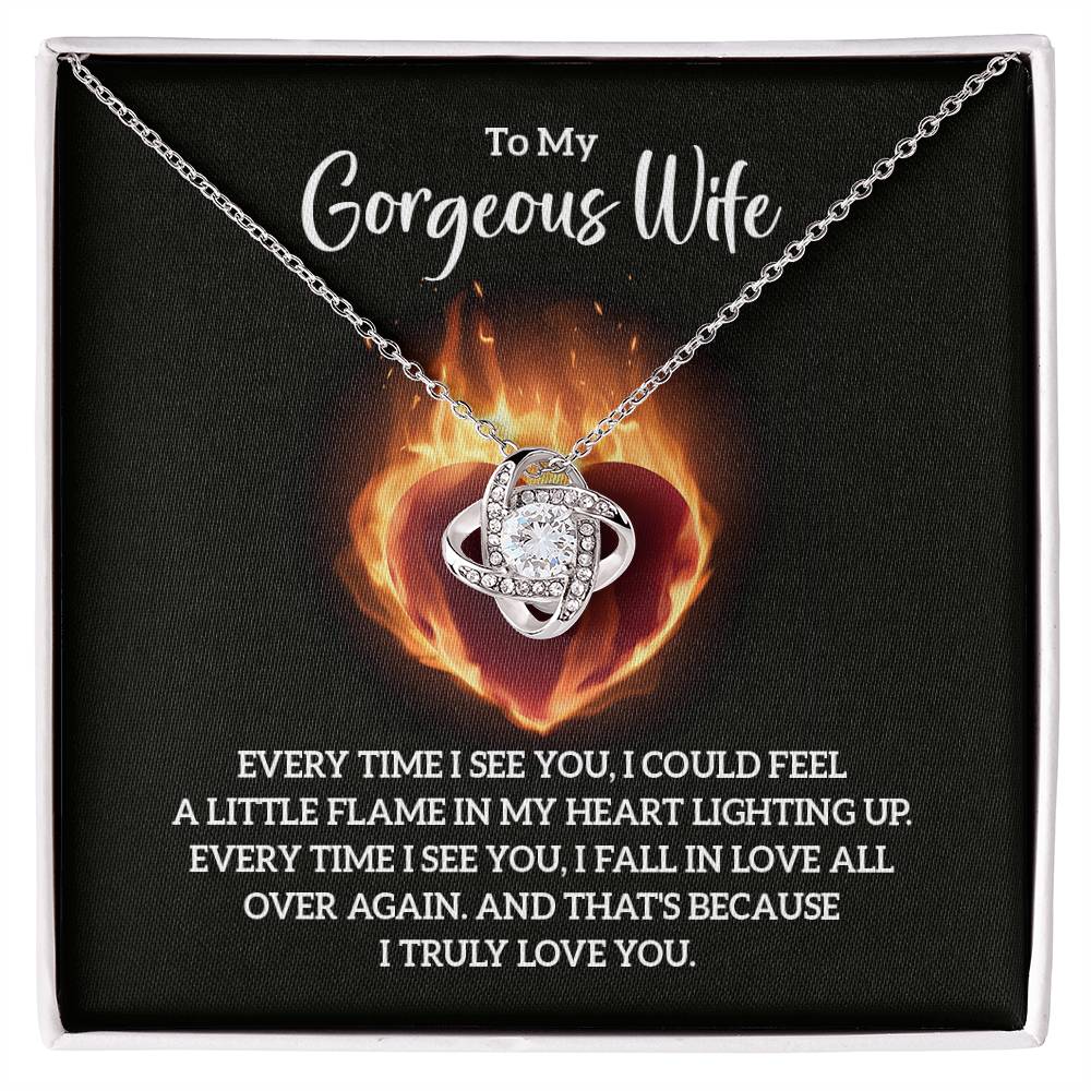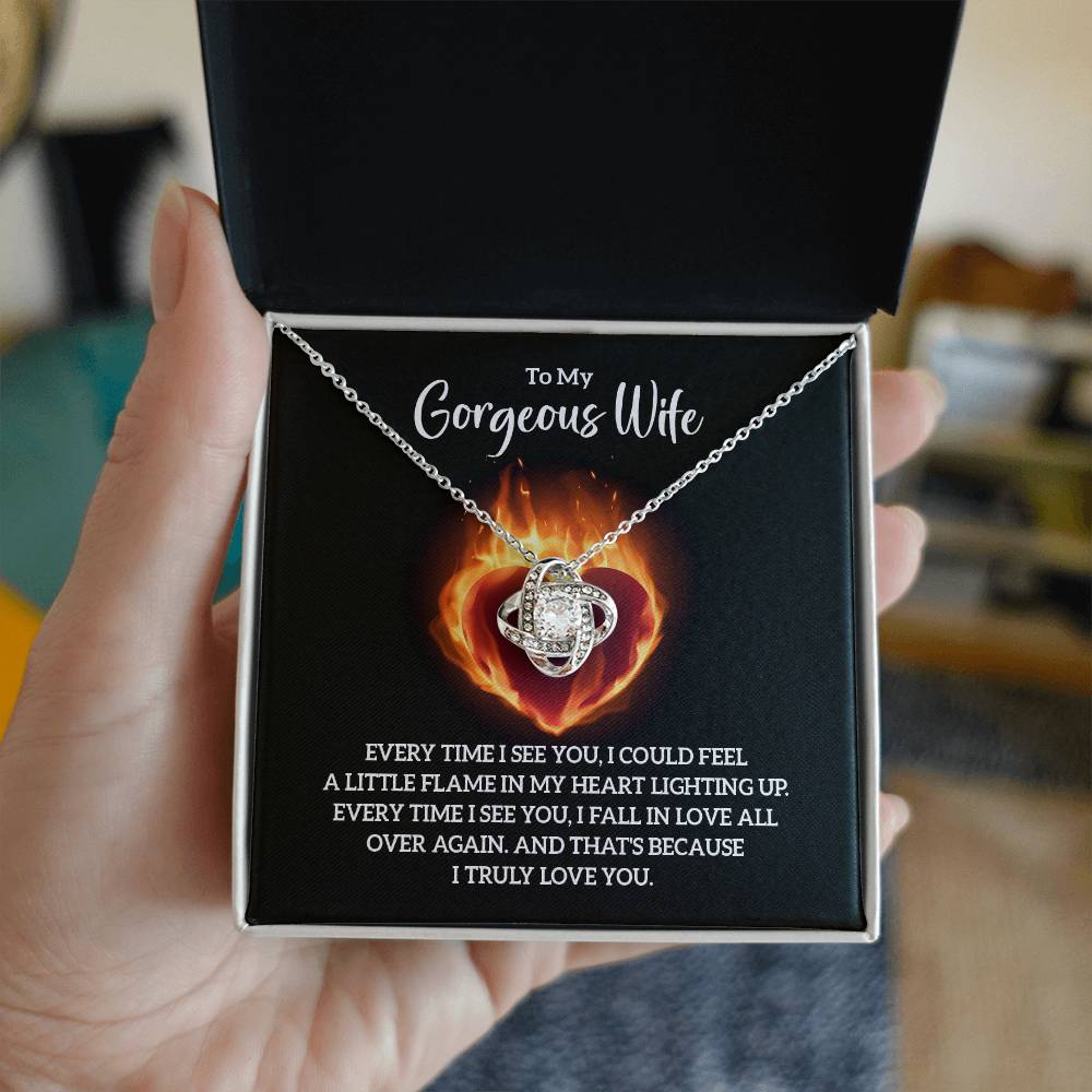 Imagine her reaction receiving this beautiful Love Knot Necklace. Representing an unbreakable bond between two souls, this piece features a beautiful pendant embellished with premium cubic zirconia crystals. Surprise your loved one with this gorgeous gift today!