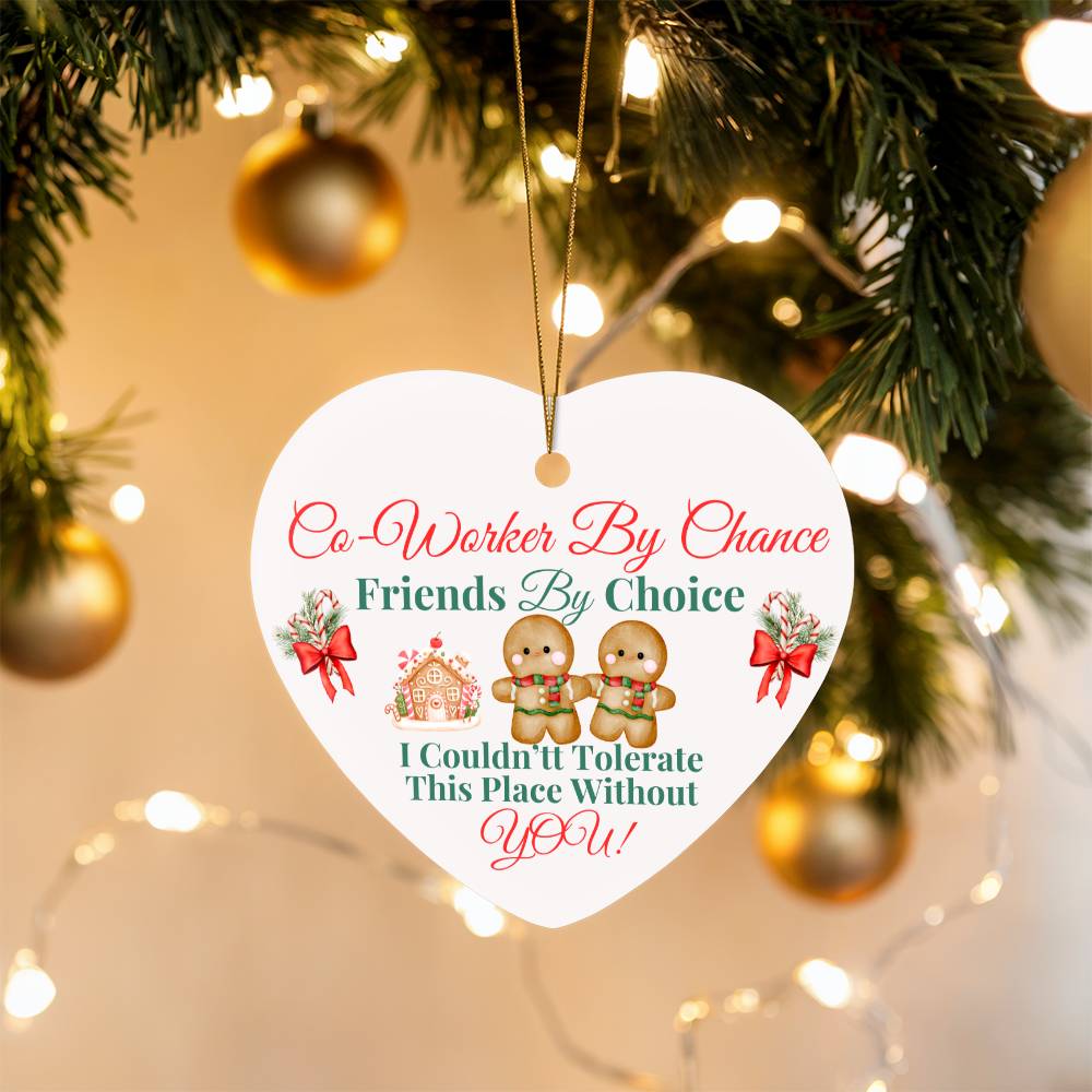 Celebrate the camaraderie and support that makes work a little brighter with our 'Colleagues by Chance, Friends by Choice' Heart Ornament! This heartfelt keepsake is a perfect way to show your appreciation for the co-workers who’ve become friends. Whether it’s a thank-you for shared laughs, teamwork, or simply making the workday better, this ornament is a meaningful gift that honors the bonds you’ve built.