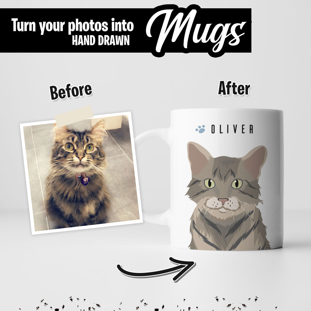 Who says cat lovers can't enjoy a nice cup of coffee in the morning? With this Custom Cat Mug, they can finally have a mug that is both personalize and stylish. This mug is perfect for any coffee lover who also happens to be a cat owner. Each Custom Cat Mug is hand-drawn and personalized with a photo of your very own cat. No two mugs are exactly alike, which makes this mug even more unique and special. The illustrations are printed on high quality ceramic, ensuring that your mug will last for years to come. So start your day off right with a cup of coffee in your new Custom Cat Mug. It'll make every cat lover's day just a little bit brighter.