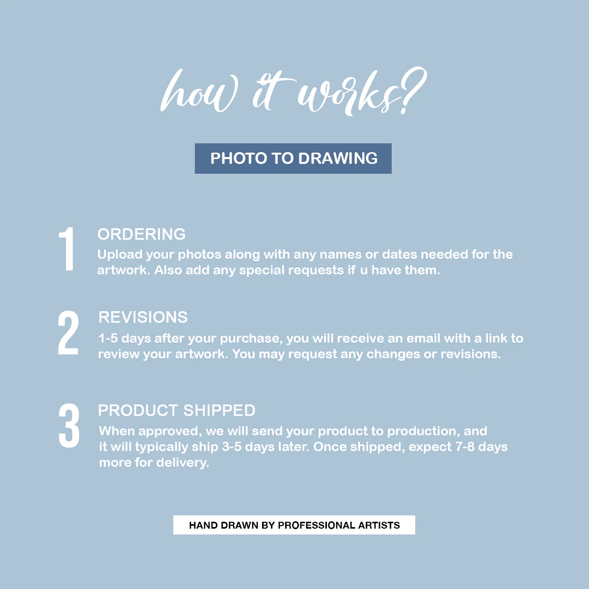 Once you've finished choosing your options, click on the 'Add to cart' button, then checkout, and you will receive your custom portrait via email for approval in a few days. Once approved, we will Ship your portrait!