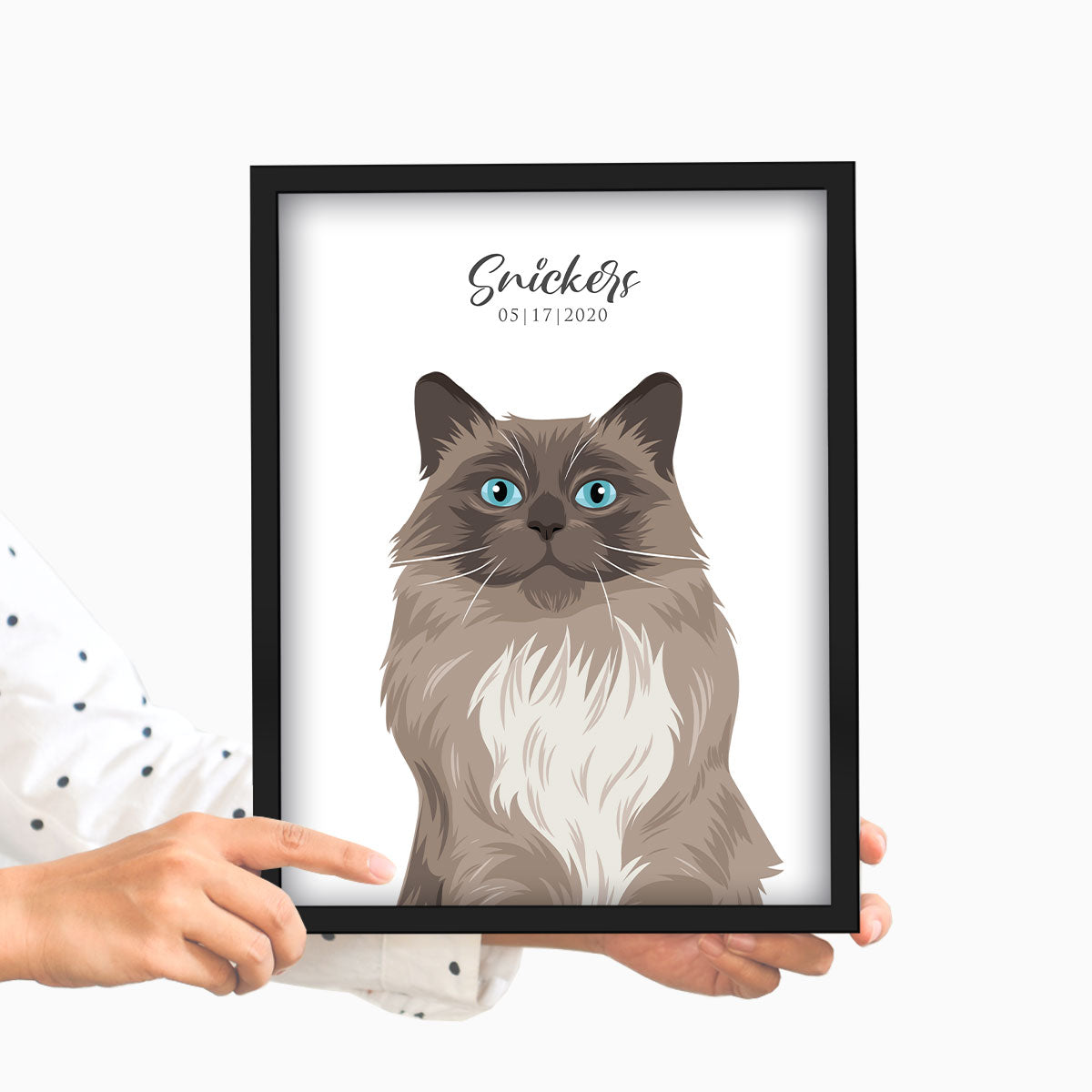 Create your Own Custom Personalized Cat Portrait Illustration Picture Frame.