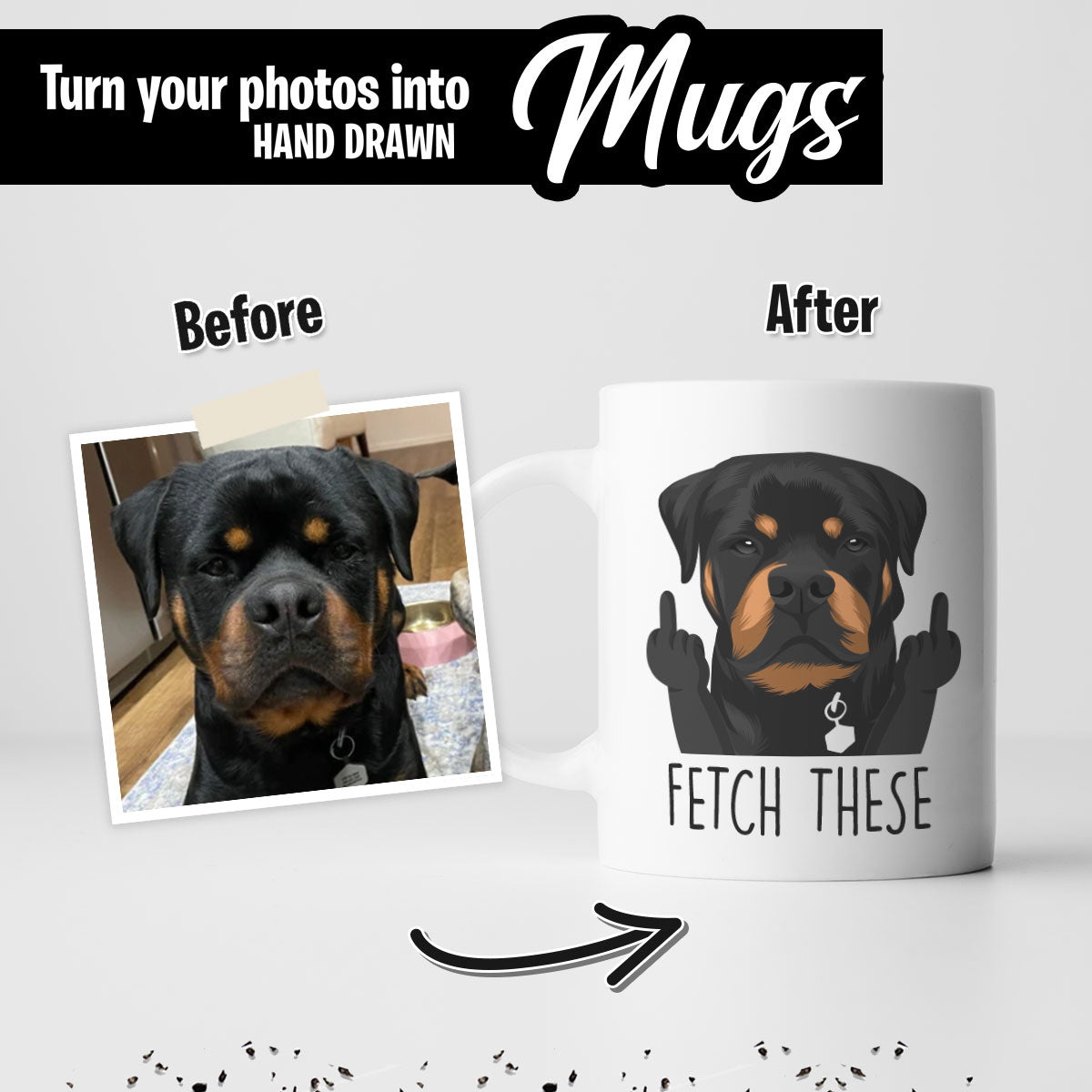 "Fetch These" Hand-Drawn Funny Custom Dog Mug
